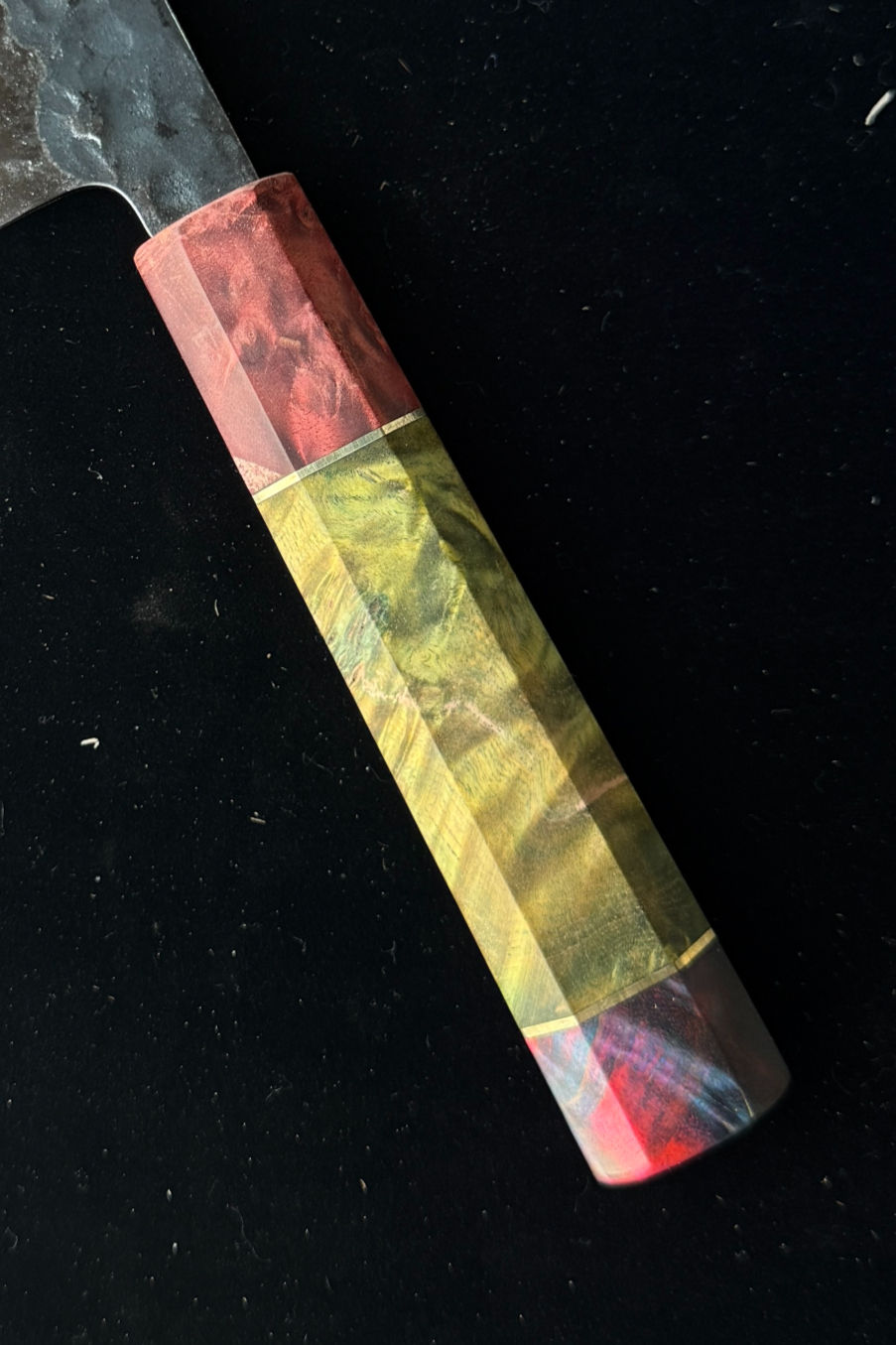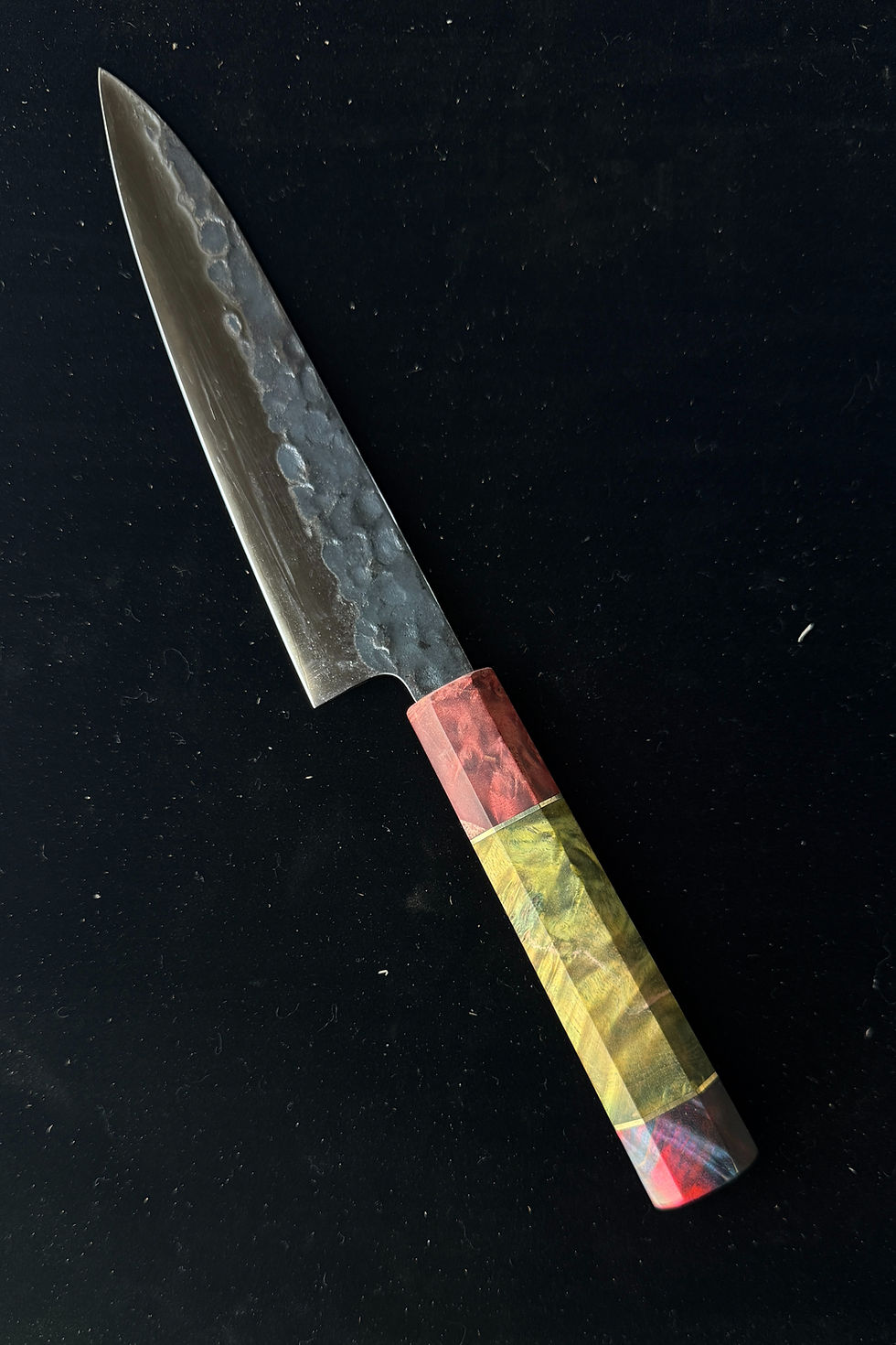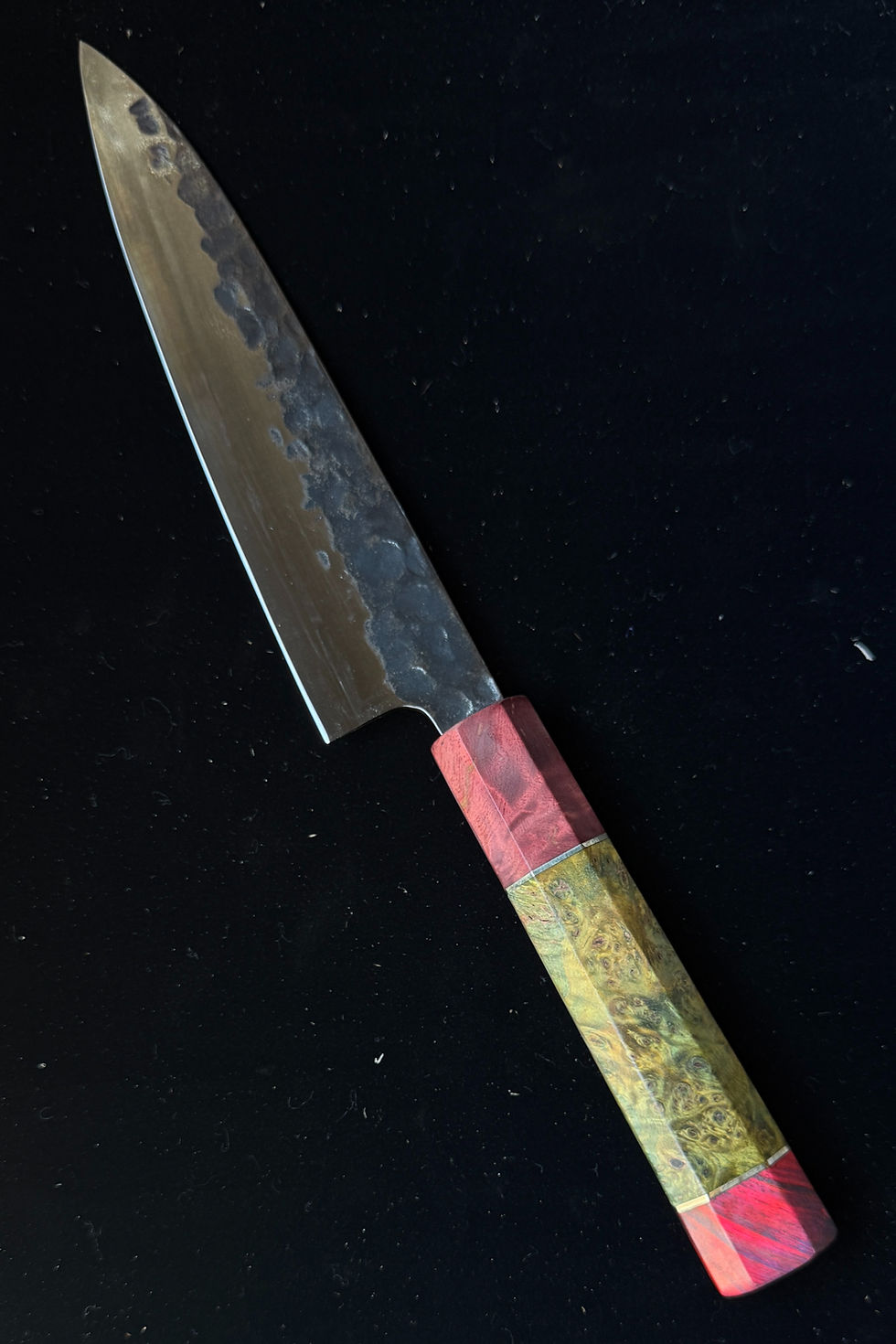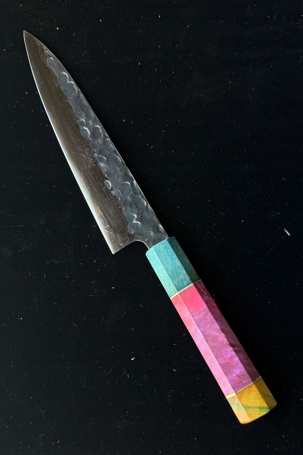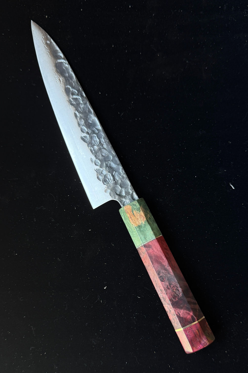 These hyper-limited edition knives pushed our team to test new techniques resulting in these stunning one-of-a-kind strikingly colored stabilized burl wood and AUS10 steel knives.